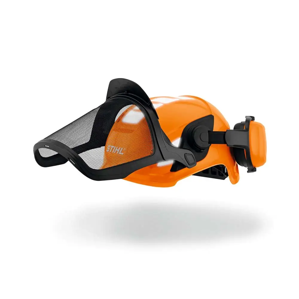 Protecția facială a setului de STIHL ADVANCE X-Vent constă dintr-o grilă din oțel cu arc cu o transmisie foarte mare a luminii de 75-80%. Aceasta înseamnă că puteți menține o vizibilitate bună chiar și în condiții nefavorabile de iluminare. Lucarnele care sunt distribuite pe casca STIHL asigură o bună ventilație.